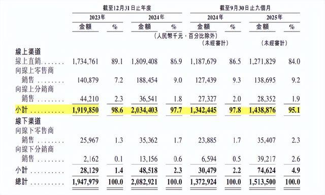 报告期内,企业线上销售占比分别为98.6%、97.7%和95.1%,其中天猫、抖音两大平台贡献了绝大部分收入。