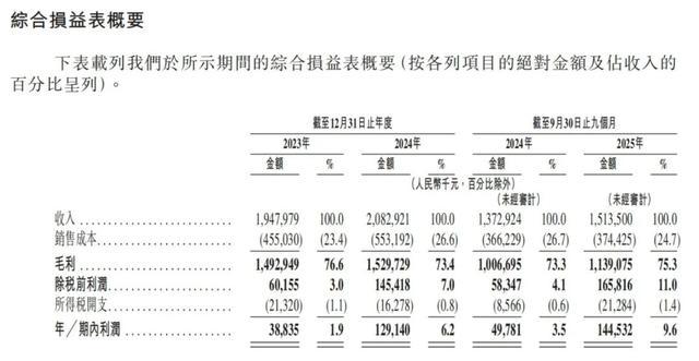 与营销形成刺眼对比的是,研发开支从2023年的6600万元一路下滑至2025年前三季度的4000万元,研发费用率从3.4%降至2.6%。