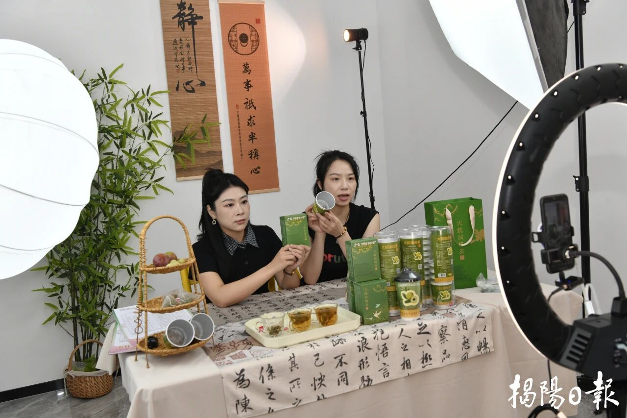 科技赋能不仅体现在生产环节,更深刻改变了农产品的流通和品牌塑造方式。在棉湖镇玉石村的大统农业发展有限公司油柑基地,返乡“新农人”方敏正通过网上直播推介油柑果。