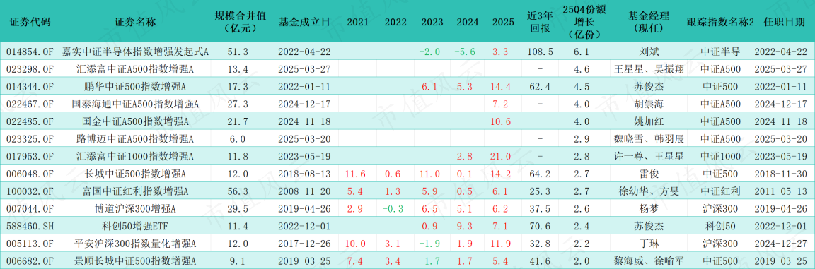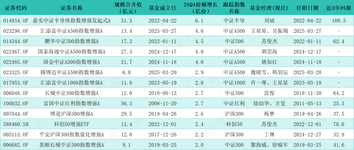 那么,2025年四季度,资金究竟流向了哪些指数增强基金?