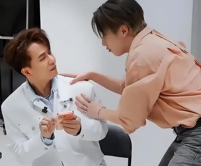 在一次活动后台,他配合年轻的种地少年团拍段子,拿自己当前辈的身份和新歌《再等等》开玩笑。